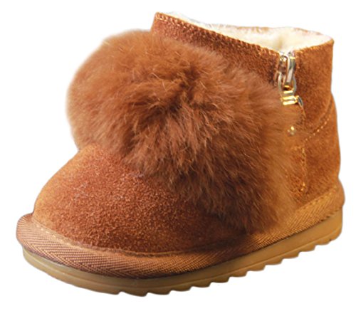 C-Princess ベビーブーツ 可愛い スノーブーツ 赤ちゃん ファーストシューズ キッズ 女の子 男の子 子供靴 ふわふわ あったか 防寒対策 ブラウン 14.5cm