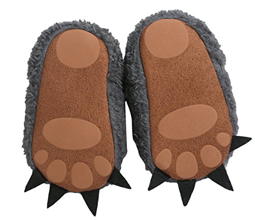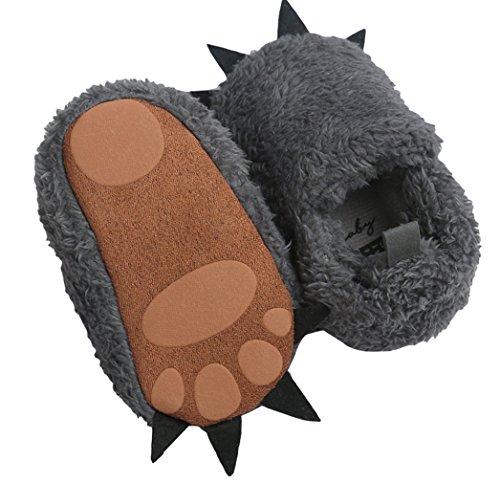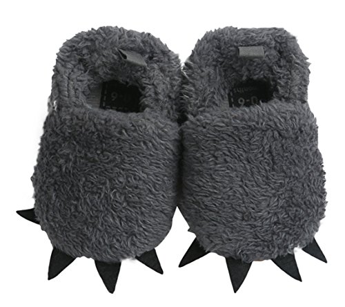 C-Princess もこもこ 暖か 恐竜 怪獣 スリッパ ルームシューズ ルーム靴 ベビー キッズ 子供用 室内履き 上履き 踵付き 防寒 個性派 仮装 コスプレ グレー 11.5cm
