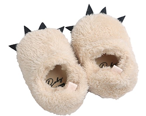 C-Princess もこもこ 暖か 恐竜 怪獣 スリッパ ルームシューズ ルーム靴 ベビー キッズ 子供用 室内履き 上履き 踵付き 防寒 個性派 仮装 コスプレ ベージュ 13.5cm