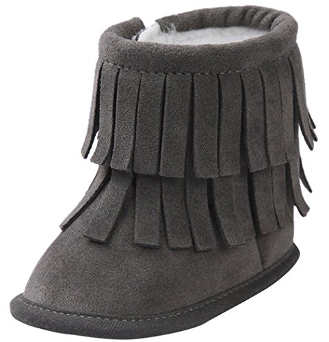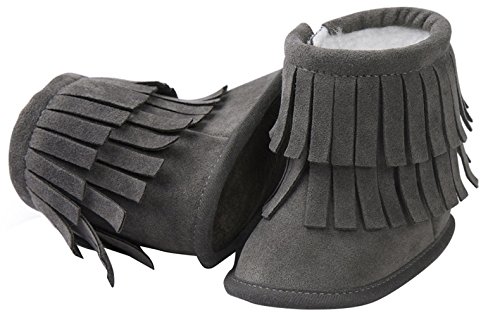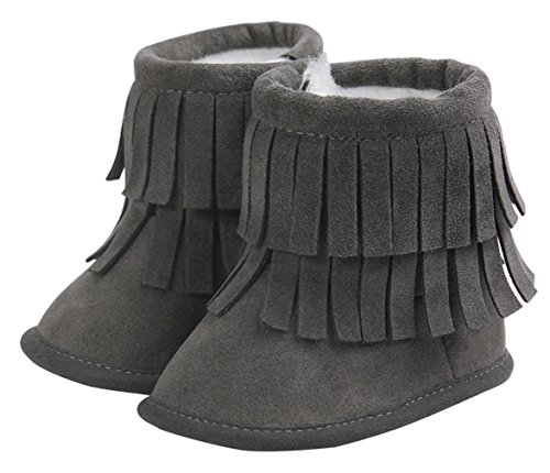 C-Princess 幼児 キッズ ルーム シューズ ファーストシューズ ショートブーツ 新生児 赤ちゃん ベビー靴 歩行靴 可愛い フリンジ 内ボア 防寒 濃いグレー 12cm