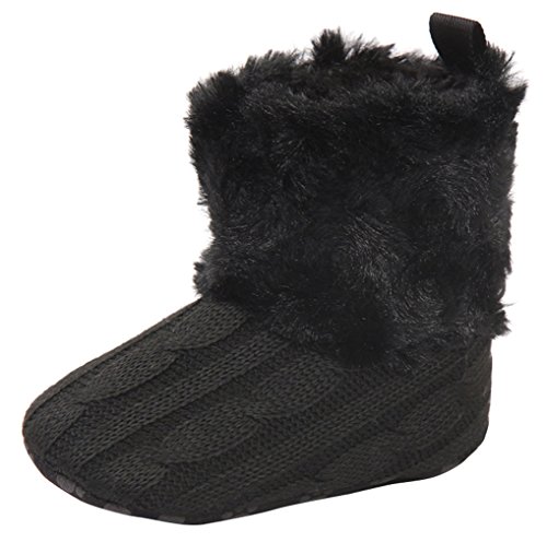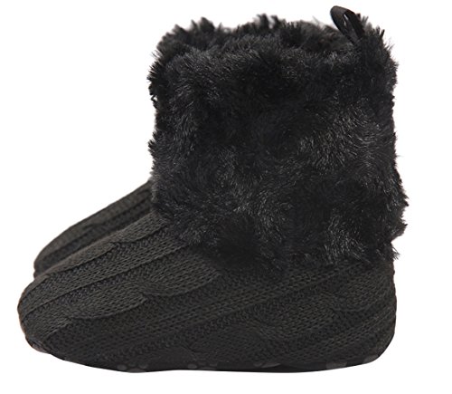 C-Princess 幼児 ベビー用 ニット ブーツ ファーストシューズ ルームシューズ 子供靴 赤ちゃん 女の子 男の子 歩行サポート モコモコ 暖かい 防寒 ブラック 12cm