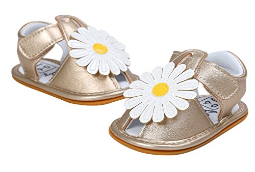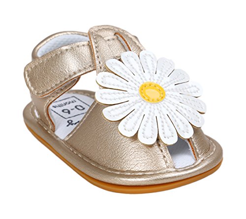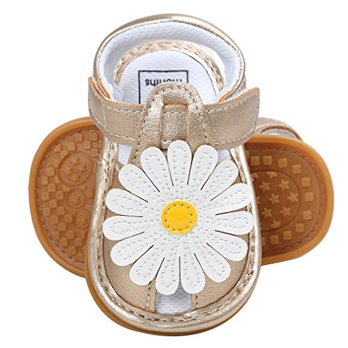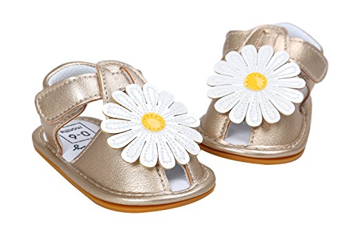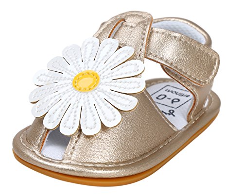 C-Princess ベビーシューズ サンダル ファーストシューズ 歩行靴 乳児靴 女の子 赤ちゃん キッズ 子供用 お花モチーフ つま先保護 滑り止め ゴールド 11cm
