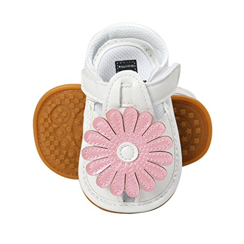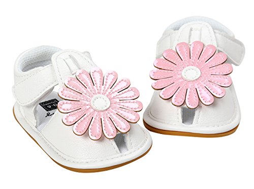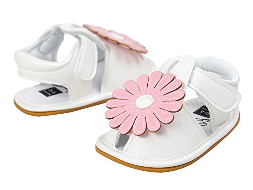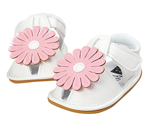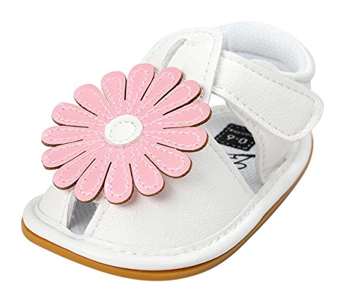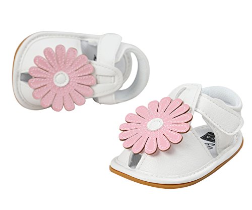 C-Princess ベビーシューズ サンダル ファーストシューズ 歩行靴 乳児靴 女の子 赤ちゃん キッズ 子供用 お花モチーフ つま先保護 滑り止め ホワイト 12cm