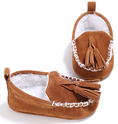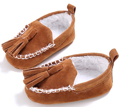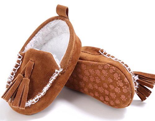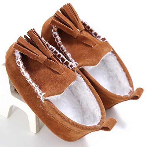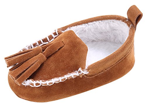 C-Princess ベビー靴 ファーストシューズ スリッポン スニーカー 幼児 子供 キッズ 赤ちゃん 男の子 女の子 裏起毛 暖かい フリンジ 可愛い ブラウン 11cm