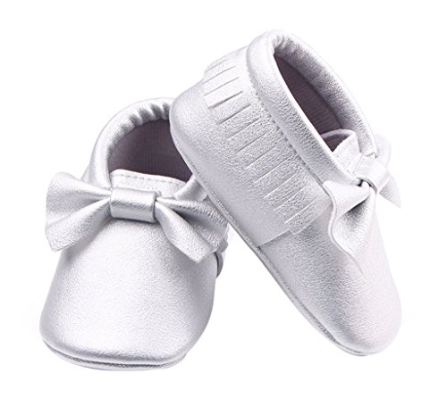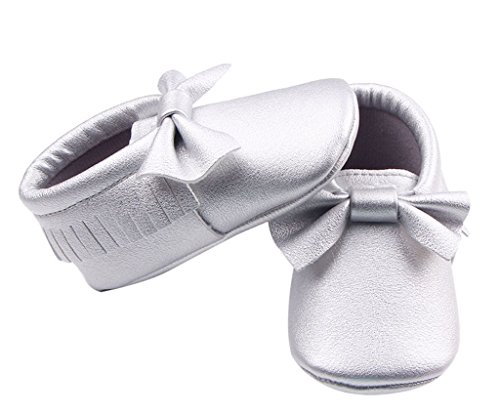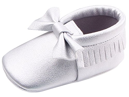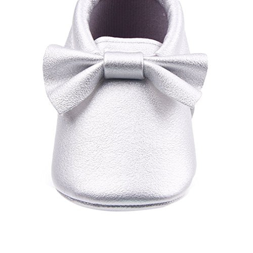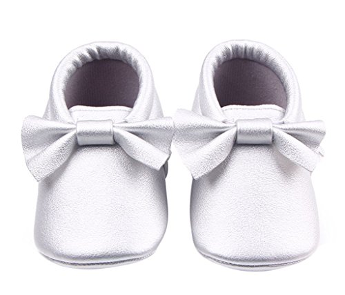C-Princess ベビーシューズ ファーストシューズ 赤ちゃん 女の子 お姫系 子供靴 フォーマル かわいい 蝶結び飾り付 結婚式 入園式 お祝い (13cm, Eシルバー)