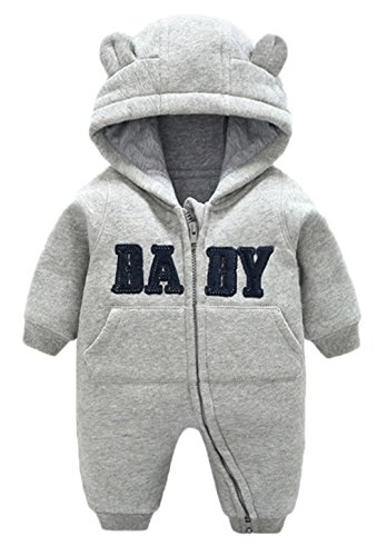 C-Princess ベビー服 カバーオール ロンパース ジャンプスーツ 着ぐるみ フード付き クマ耳 秋冬 新生児 赤ちゃん キッズ 男女兼用 防寒着 厚手 グレー 66