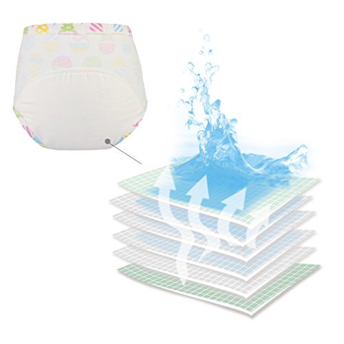 - おむつ外しの練習に! お昼寝や少量のおねしょ用として最適です。吸水層は表パンツに縫い付けられています。