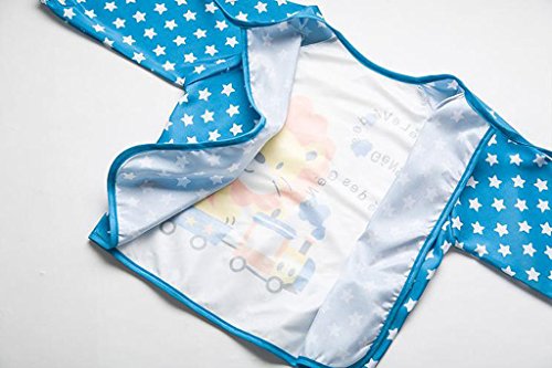 C-Princessベビーエプロン スモック 防水ビブ よだれかけ お食事用スタイ 長袖 赤ちゃん 新生児 幼児 食事用 保育園 動物柄 (110, Iブルー*ゾウ)