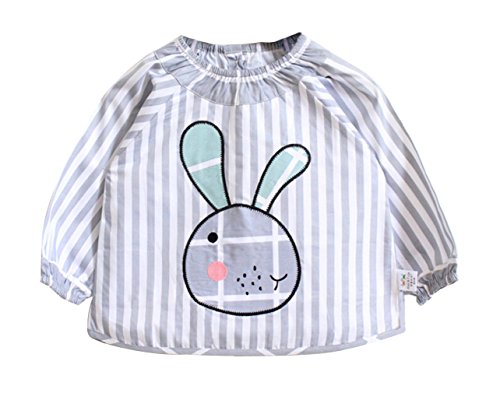 C-Princess ベビー 防水 長袖 スモック 食事 エプロン 幼児 赤ちゃん ビブ スタイ ガウン うさぎ柄 可愛い 女の子 幼稚園 保育園 出産祝い グレー*ストライプ 90