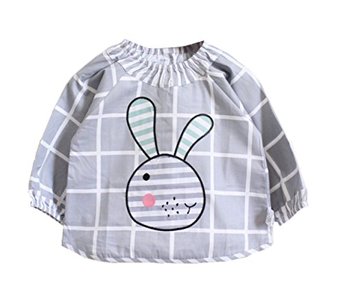 C-Princess ベビー 防水 長袖 スモック 食事 エプロン 幼児 赤ちゃん ビブ スタイ ガウン うさぎ柄 可愛い 女の子 幼稚園 保育園 出産祝い グレー*チェック 80
