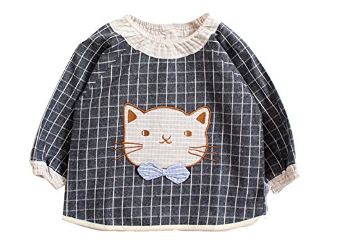 C-Princess ベビー 防水 長袖 スモック 食事 エプロン 幼児 赤ちゃん ビブ スタイ ガウン チェック ネコちゃん 可愛い 女の子 男の子 幼稚園 保育園 ネイビー 110