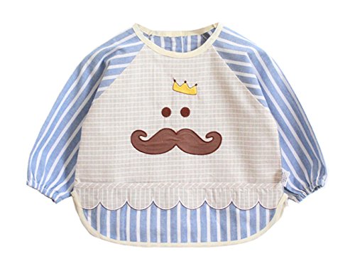 C-Princess ベビー 防水 長袖 スモック 食事 エプロン 幼児 赤ちゃん ビブ スタイ ガウン ストライプ ひげ柄 可愛い 女の子 男の子 幼稚園 保育園 ブルー 90