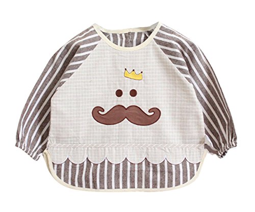 C-Princess ベビー 防水 長袖 スモック 食事 エプロン 幼児 赤ちゃん ビブ スタイ ガウン ストライプ ひげ柄 可愛い 女の子 男の子 幼稚園 保育園 コーヒー 100