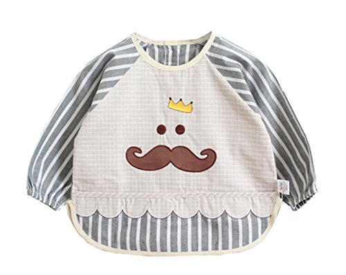 C-Princess ベビー 防水 長袖 スモック 食事 エプロン 幼児 赤ちゃん ビブ スタイ ガウン ストライプ ひげ柄 可愛い 女の子 男の子 幼稚園 保育園 グリーン 90