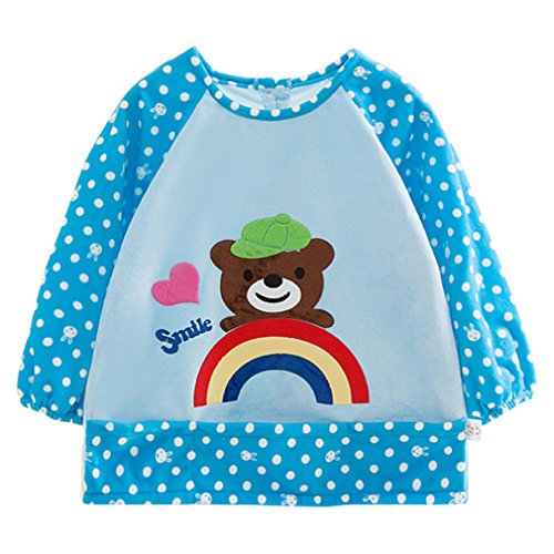 - 長袖のデザインので、ベビーの腕も覆います。服の袖の手首をよごさません。