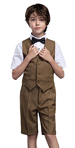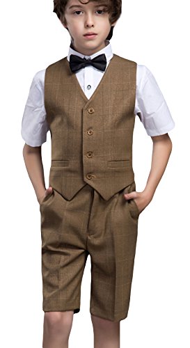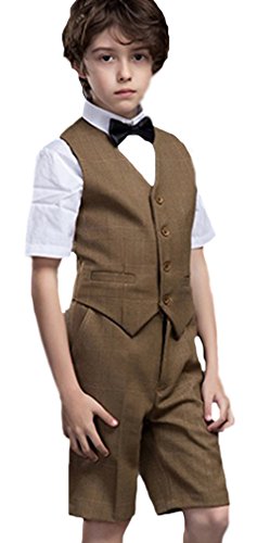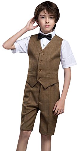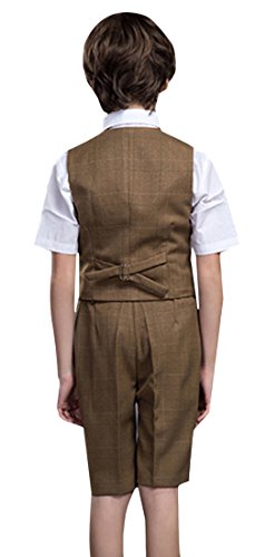 C-Princess タキシード 男の子 キッズ スーツ 子供服 ジャケット 半袖 ハーフパンツ 4点セット 重ね着風 卒業式 発表会 司会者 春夏 ブラウン 160