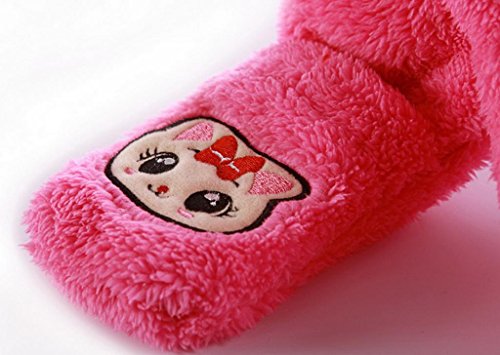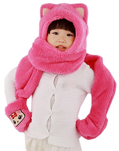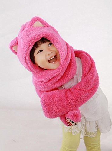 C-Princess防寒フード 手ポケット マフラー 一つで三役 多機能 キッズ 子供用 女の子 帽子 手袋 ストール 可愛く防寒 もこもこ (Bローズ)