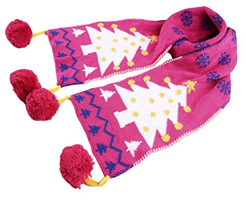 C-Princess キッズ ベビー ニット マフラー ネックウォーマー 子ども ストール 秋冬 かわいい クリスマスツリー柄 ポンポン 防寒 あったかい ローズ