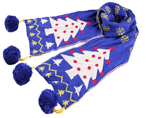 C-Princess キッズ ベビー ニット マフラー ネックウォーマー 子ども ストール 秋冬 かわいい クリスマスツリー柄 ポンポン 防寒 あったかい ブルー