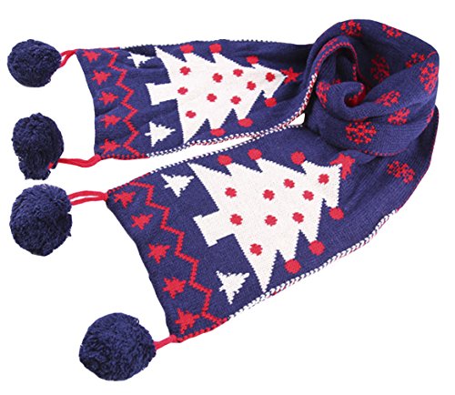 C-Princess キッズ ベビー ニット マフラー ネックウォーマー 子ども ストール 秋冬 かわいい クリスマスツリー柄 ポンポン 防寒 あったかい ネイビー