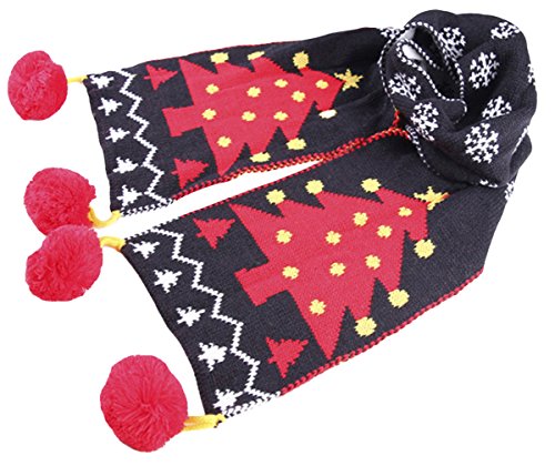 C-Princess キッズ ベビー ニット マフラー ネックウォーマー 子ども ストール 秋冬 かわいい クリスマスツリー柄 ポンポン 防寒 あったかい ブラック