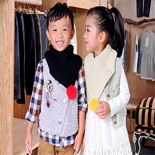 首元を温かくなるニット素材の子供用マフラー。ポンポンが飾りとして、可愛いスタイルに仕上げました。