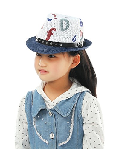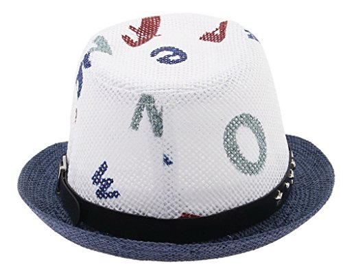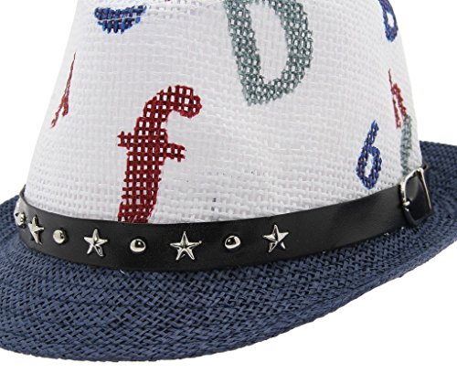 C-Princess子供帽子 中折れ帽子 麦わら風ハット ストローハット キッズ 男の子 女の子 レタープリント ダンス 発表会 幼稚園 保育園 (1ネイビー)