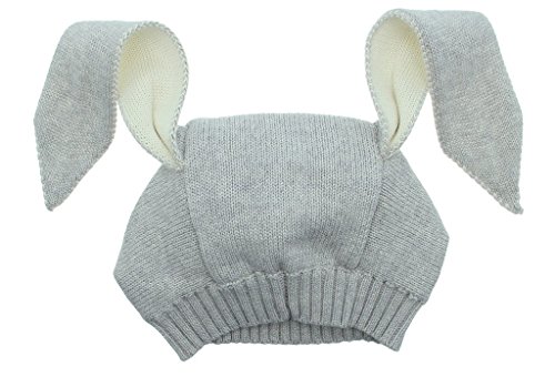 C-Princess子供帽子 ベビー帽子 ニット帽 キャップ うさぎモチーフ 幼児 キッズ ガールズ 女の子用 かわいい 秋冬 防寒 お出かけ グレー