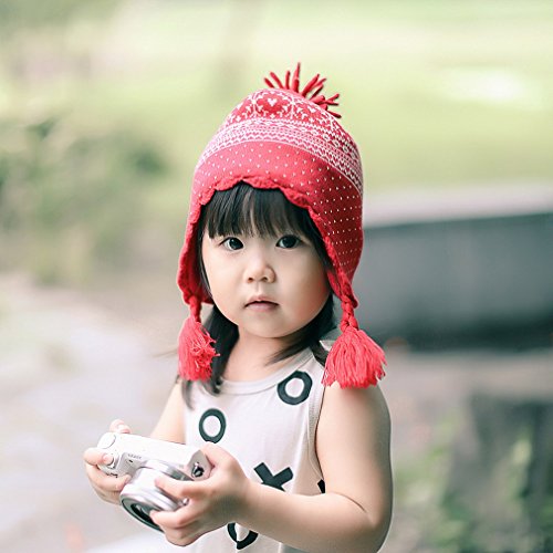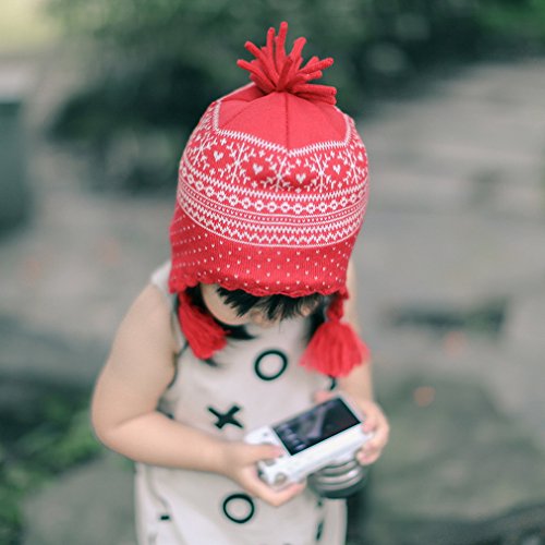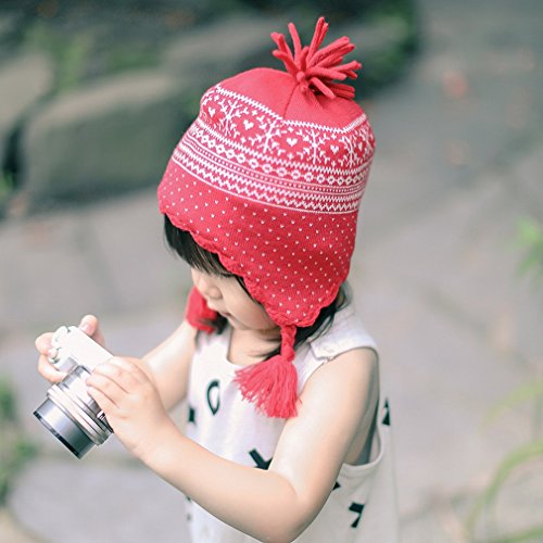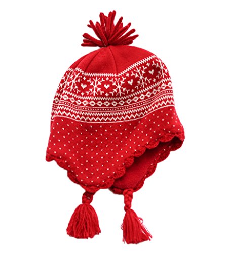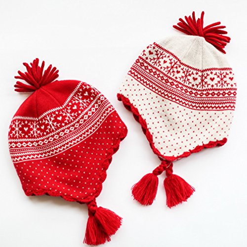 C-Princess秋冬 防寒 子供用 ニット 帽子 ハット ベビー キッズ 赤ちゃん 女の子 ガールズ 幼児 雪柄 かわいい お出かけ 出産祝い (M, Bレッド)