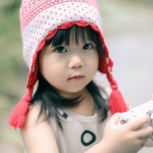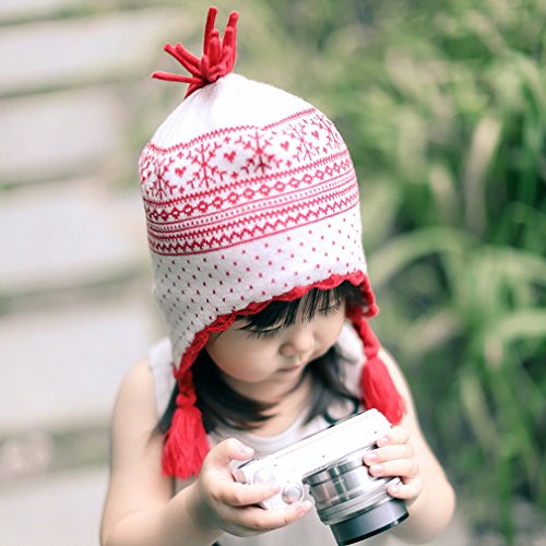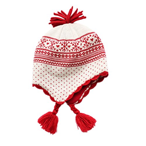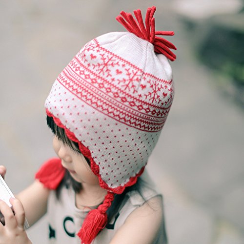 C-Princess秋冬 防寒 子供用 ニット 帽子 ハット ベビー キッズ 赤ちゃん 女の子 ガールズ 幼児 雪柄 かわいい お出かけ 出産祝い (S, Aホワイト)
