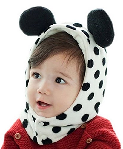 C-Princessかわいい ベビー用 帽子 キャップ フード ネックウォーマー キッズ 赤ちゃん 子供用 あったか 防寒 ドット柄 耳付き (Bホワイト)
