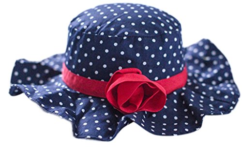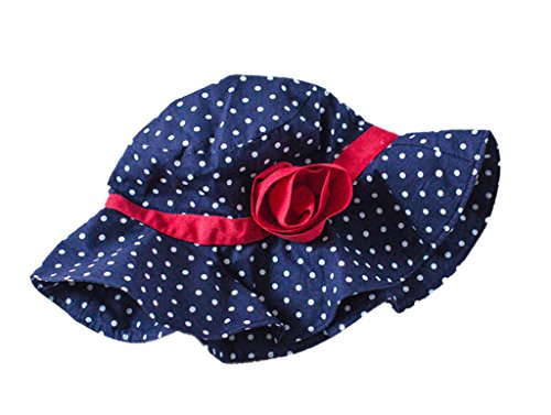 C-Princess子供帽子 サファリハット キャップ ベビー キッズ 女の子 可愛い 花付き ドット柄 アウトドア 日焼け 春夏秋 ブルー (54cm)
