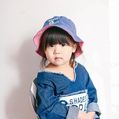 C-Princessキッズ リバーシブル コットン サファリハット サーフハット ビーチハット子供帽子 あご紐付き ベビー 女の子 男の子 日よけ (44cm)