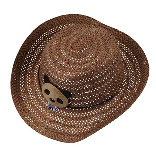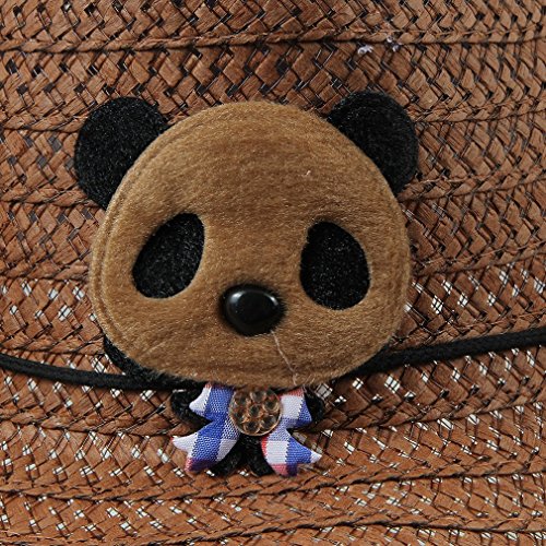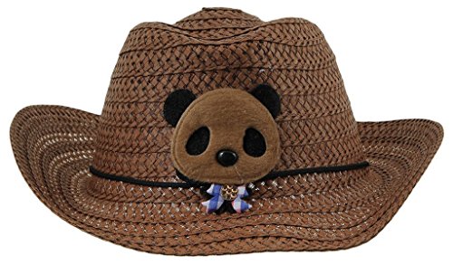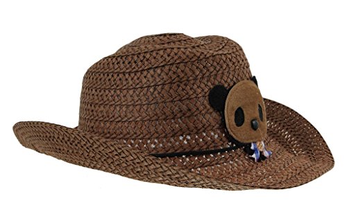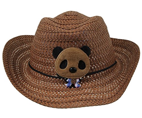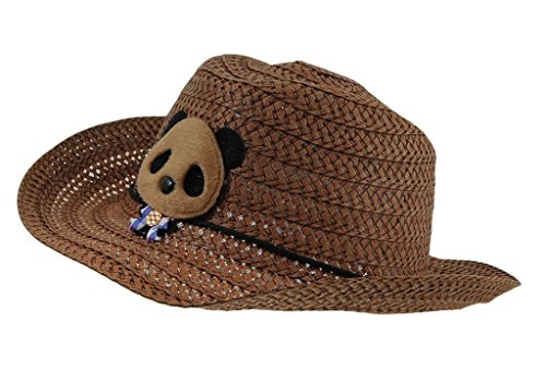 C-Princess 夏 キッズ UVカット クマモチーフ かわいい カウボーイハット ストローハット 麦わら帽子 つば広 子ども 女の子 男の子 (Dコーヒー)