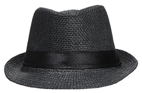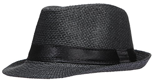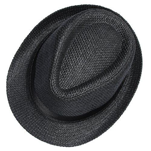 C-Princess 子供用 中折れ帽子 ストローハット 紫外線対策 UVケア 軽量 通気 おしゃれ キッズ 男の子 女の子 幼稚園 保育園 小学生 春夏 ブラック