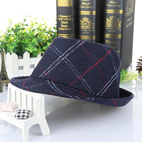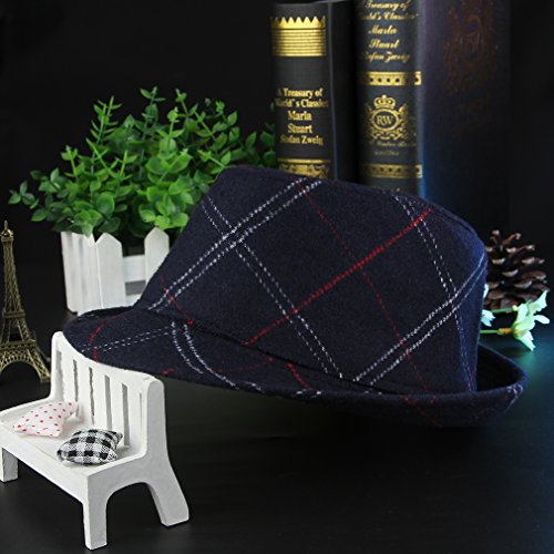 C-Princess 秋冬 子供用 中折れ帽子 フェルトハット キャップ チェック柄 キュート キッズ 女の子 男の子 フォーマル 発表会 ダンス ブルー