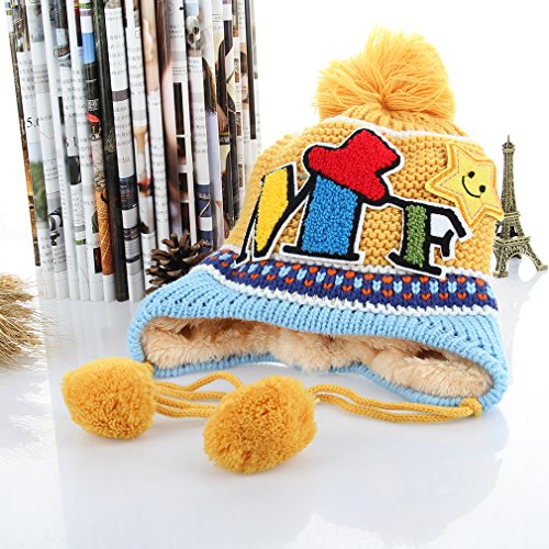 C-Princess ベビー帽子 ニット帽 ニットキャップ 子供 赤ちゃん キッズ ポンポン 耳あて付き 内側ボア付き あったかい 秋冬 防寒保温 かわいい イエロー