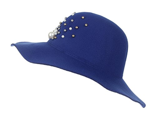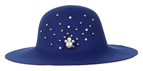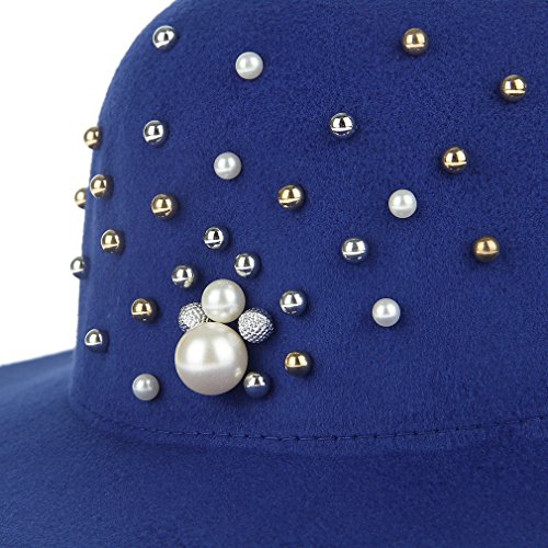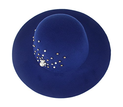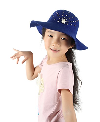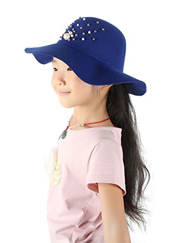 C-Princess 秋冬 子供用 つば広帽子 フェルトハット キャップ ビーズ飾り キュート キッズ 女の子 女優帽 フォーマル 発表会 ダンス ブルー