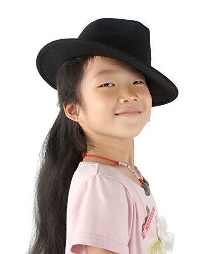 C-Princess 秋冬 子供用 つば広帽子 中折れ フェルトハット キャップ かわいい キッズ 女の子 女優帽 フォーマル 発表会 ダンス ブラック