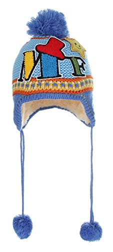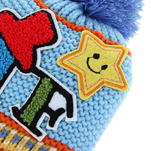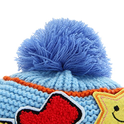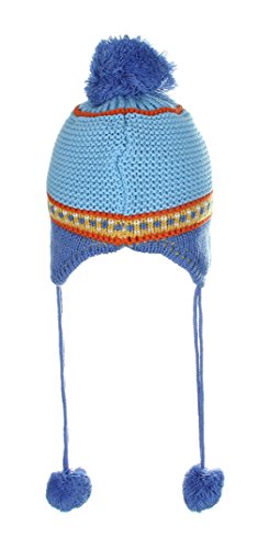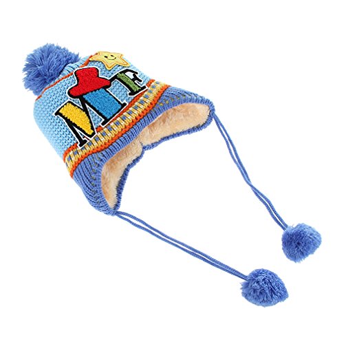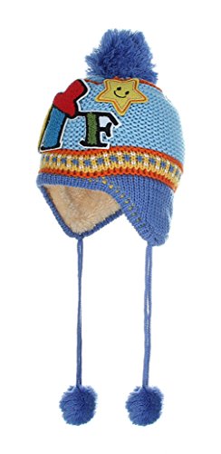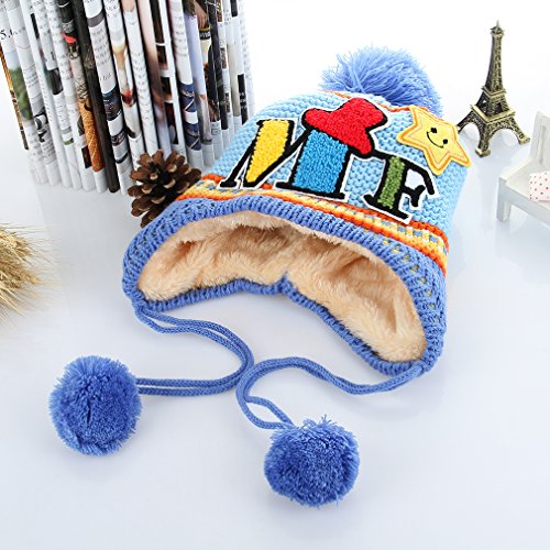 C-Princess ベビー帽子 ニット帽 ニットキャップ 子供 赤ちゃん キッズ ポンポン 耳あて付き 内側ボア付き あったかい 秋冬 防寒保温 かわいい ブルー