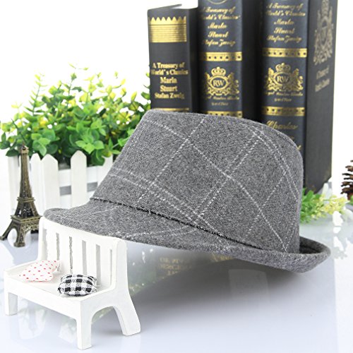 C-Princess 秋冬 子供用 中折れ帽子 フェルトハット キャップ チェック柄 キュート キッズ 女の子 男の子 フォーマル 発表会 ダンス グレー