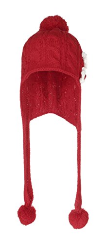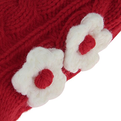C-Princess ベビー ニット帽子 ニットキャップ 耳あて ポンポン付き 花飾り かわいい 子供 キッズ 赤ちゃん 新生児 女の子 秋冬 防寒 保温 レッド