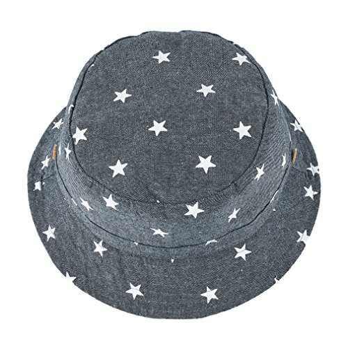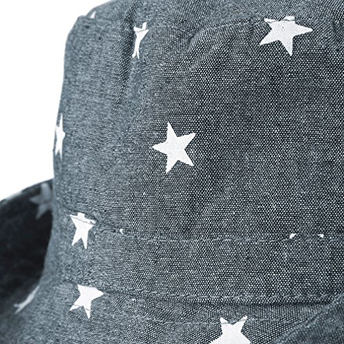 C-Princess デニム帽 ベビー用 紐付き キャップ つば広 赤ちゃん 星柄 キッズ 幼児 お出かけ 帽子 紫外線 UVカット 日よけ 日焼け止め 濃いブルー 48