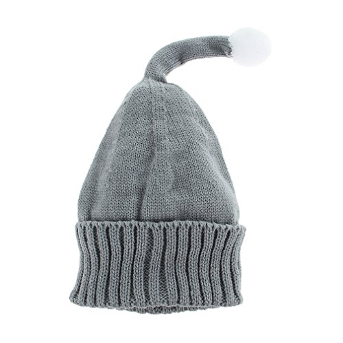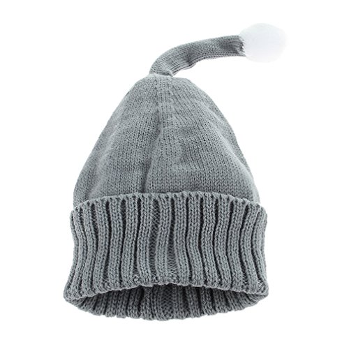 C-Princess ベビー ニット帽子 ニットキャップ とんがり帽子 ポンポン付き かわいい 子供 キッズ 赤ちゃん 新生児 女の子 秋冬 防寒 保温 グレー