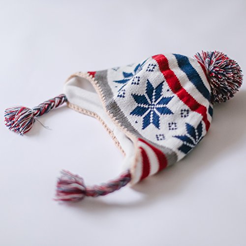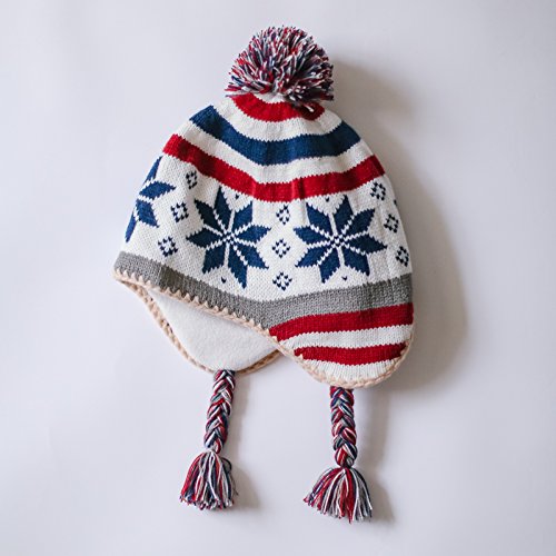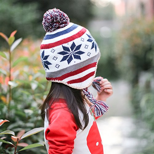 C-Princess ニット帽 ベビー用 耳付き 裹起毛 キャップ 女の子 男の子 赤ちゃん 雪花模様 キッズ 幼児 防寒対策 お出かけ お散歩 帽子 L