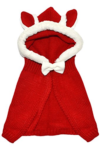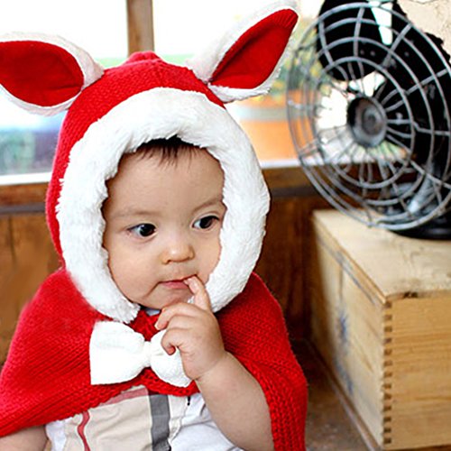 C-Princess ベビー キッズ 赤ちゃん うさぎちゃん風 ニット帽 ニット ポンチョ 頭巾 ネックウォーマー 防寒着 ボレロ リボン付き 可愛い 子供用 レッド