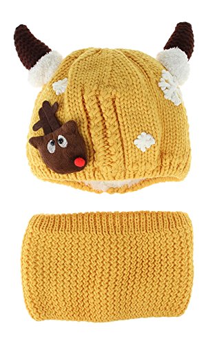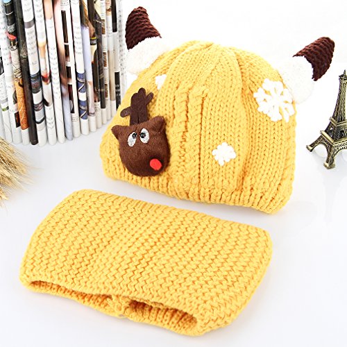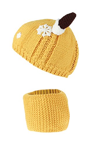 C-Princess ニット帽子 ネックウォーマー セット ベビー キッズ 子供用 裏起毛 あったか 防寒 冬 キャップ スヌード かわいい 女の子 赤ちゃん イエロー
