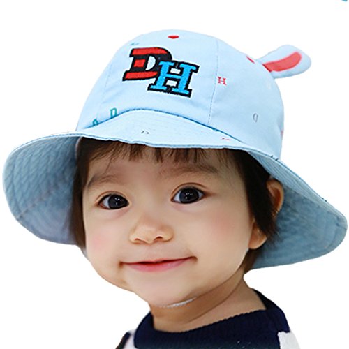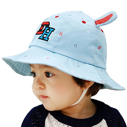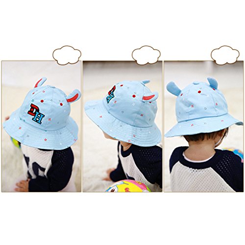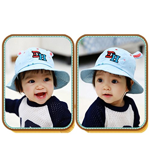 C-Princess ベビー 赤ちゃん 帽子 バケットハット サファリハット 幼児 キッズ 子供用 綿 UVカット 耳付き かわいい アウトドア ビーチ ブルー
