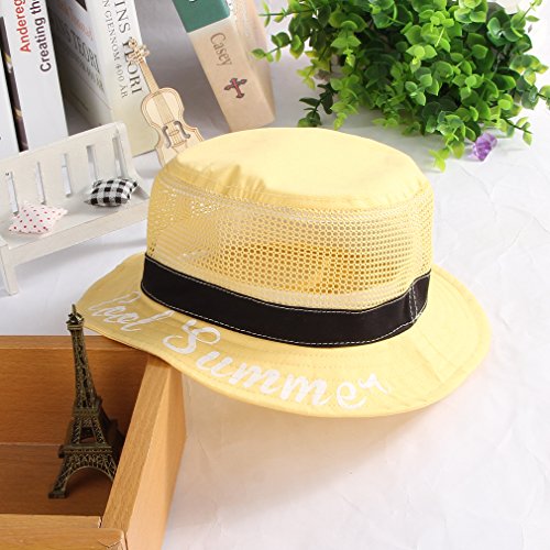 C-Princess 可愛い ビーチハット サファリハット バッケトハット つば広 キャップ サンバイザー 赤ちゃん ベビー 幼児用 帽子 メッシュ 通気 イエロー