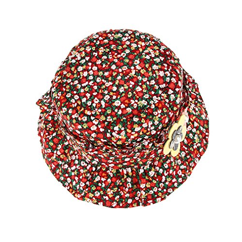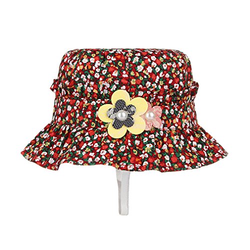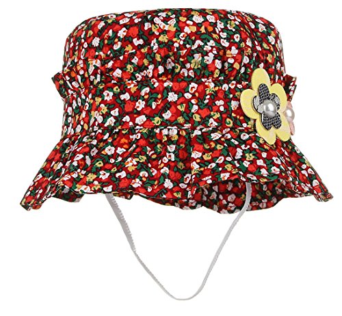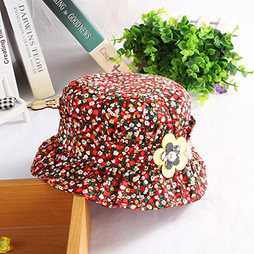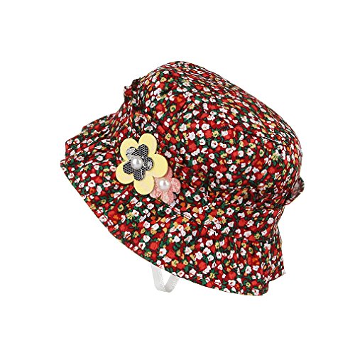 C-Princess 小花柄 つば付き ハット ベビー 赤ちゃん用 帽子 可愛い 子供 女の子 サファリハット バケットハット サンバイザー 日よけ 紫外線対策 レッド